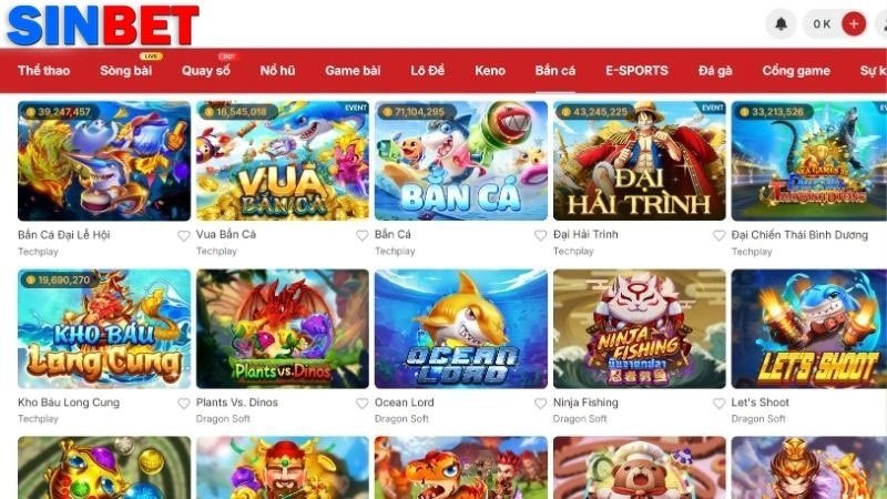 Những sảnh game vượt trội có mặt tại Sinbet