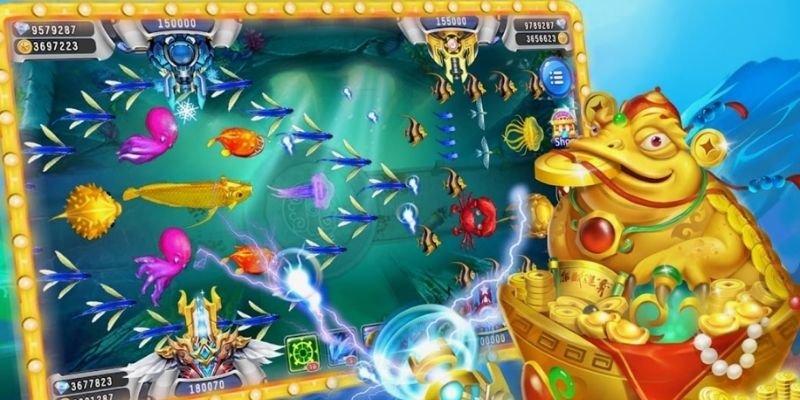 Game bắn cá mang đậm phong cách Á Đông với hình ảnh rồng vàng, thần tài và các biểu tượng may mắn truyền thống. Tỷ lệ thưởng cao với hệ số nhân lên đến 500 lần, boss xuất hiện thường xuyên mỗi 10-15 phút mang giá trị jackpot khủng. Tính năng đặc biệt là búa thần tài có thể nhân đôi điểm thưởng trong 30 giây, giúp tối ưu lợi nhuận khi kích hoạt đúng thời điểm có nhiều cá giá trị cao.